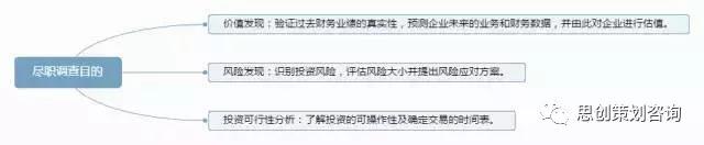 尽职调查目分为三方面: 价值发现、风险发现和投资可行性分析。